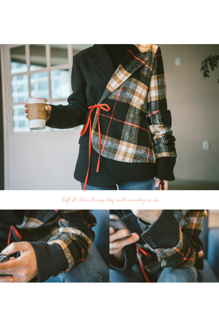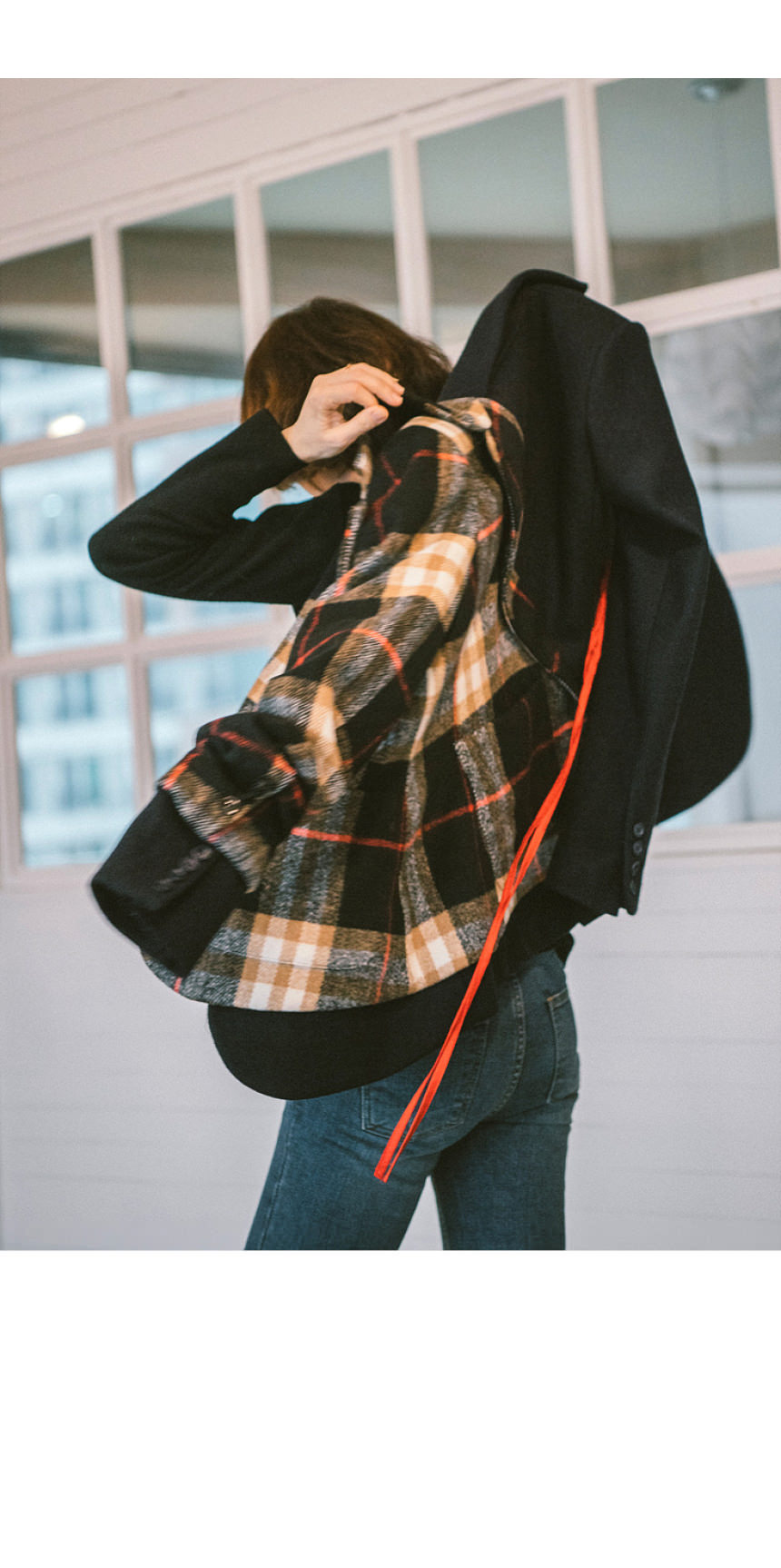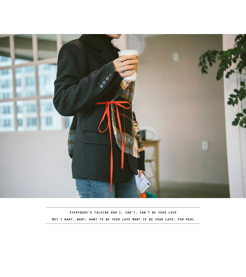 即使离12月24 25日还有一段时间,但是在这整整一个月的节日前气氛中,这套西装都可以让你有一个节日的过渡~秋冬是格子条纹大行其道的季节,流行了那么多年,依旧经久不衰~而我们是meiday,meiday怎么会选择一件普通的格纹大衣给你们呢?^*^这件不同材质,不同颜色,不同格纹设计的西服刚好满足了我们需要的所有细节和独立精神!更值得一提的是腰间的红色绑带设计,更是点睛之笔,将这件衣服的现代感和优雅尽显无遗!相信我们,这绝对是一件极具魅力的西装上衣!