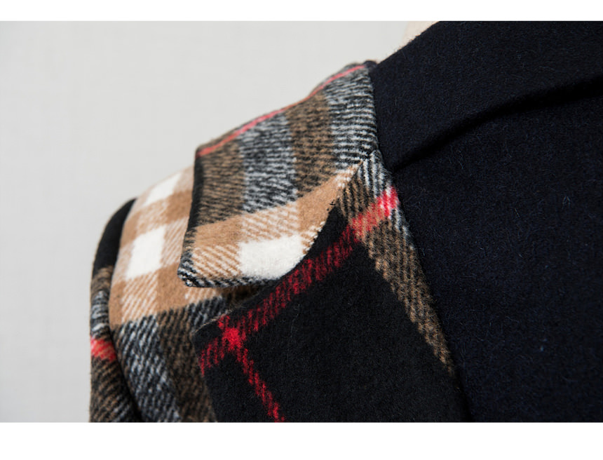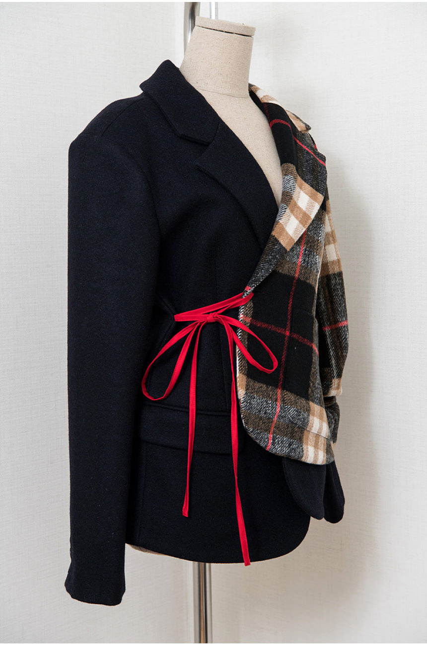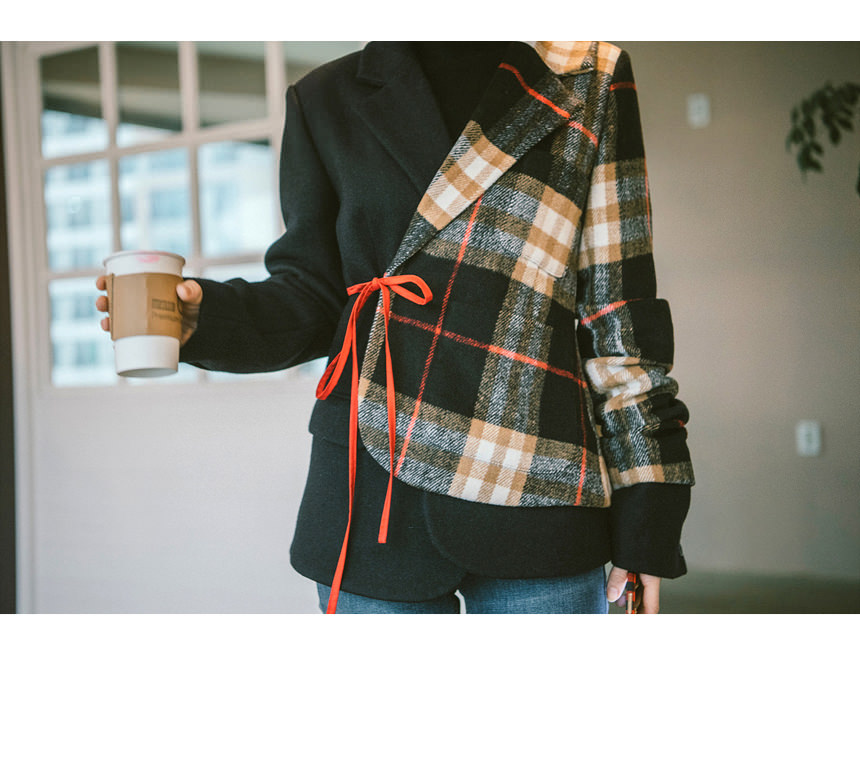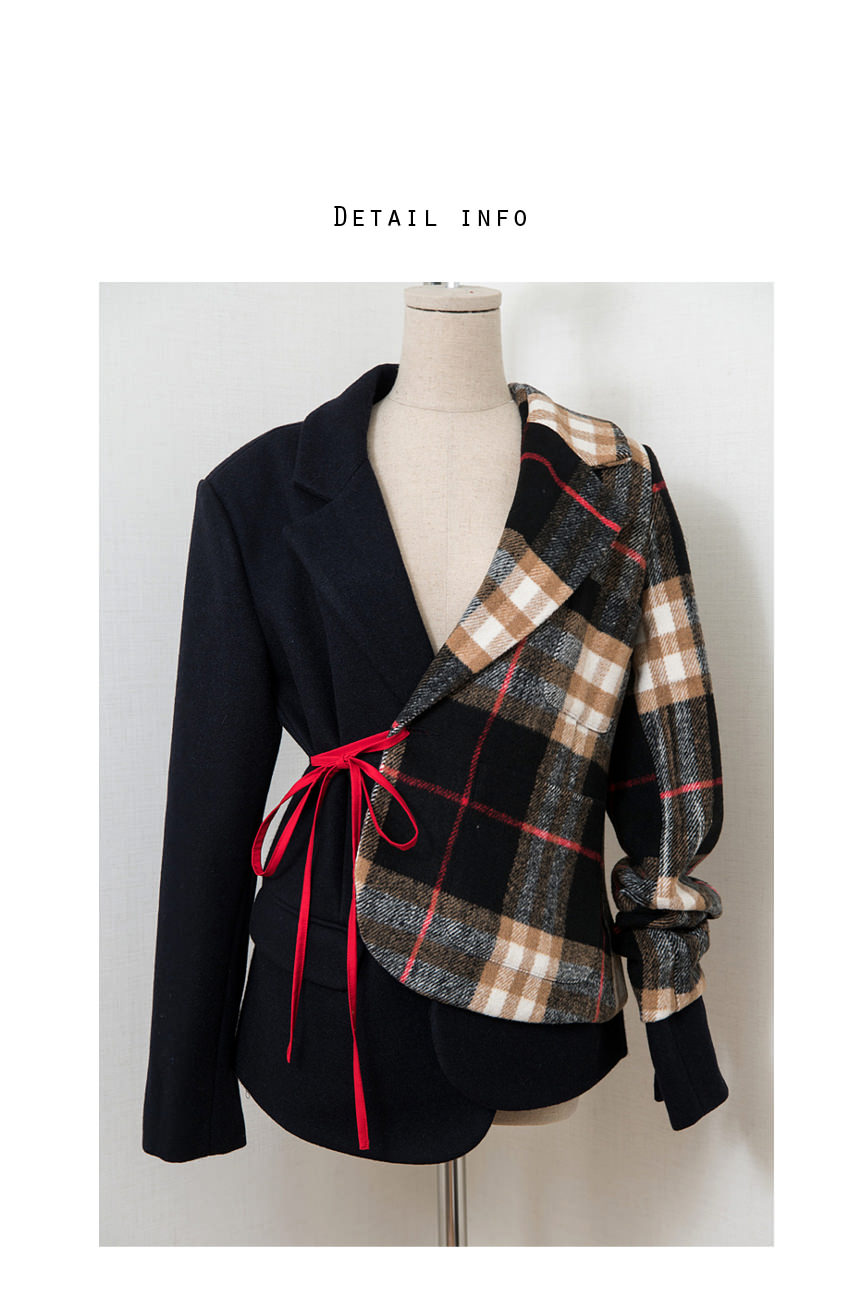 即使离12月24 25日还有一段时间,但是在这整整一个月的节日前气氛中,这套西装都可以让你有一个节日的过渡~秋冬是格子条纹大行其道的季节,流行了那么多年,依旧经久不衰~而我们是meiday,meiday怎么会选择一件普通的格纹大衣给你们呢?^*^这件不同材质,不同颜色,不同格纹设计的西服刚好满足了我们需要的所有细节和独立精神!更值得一提的是腰间的红色绑带设计,更是点睛之笔,将这件衣服的现代感和优雅尽显无遗!相信我们,这绝对是一件极具魅力的西装上衣!