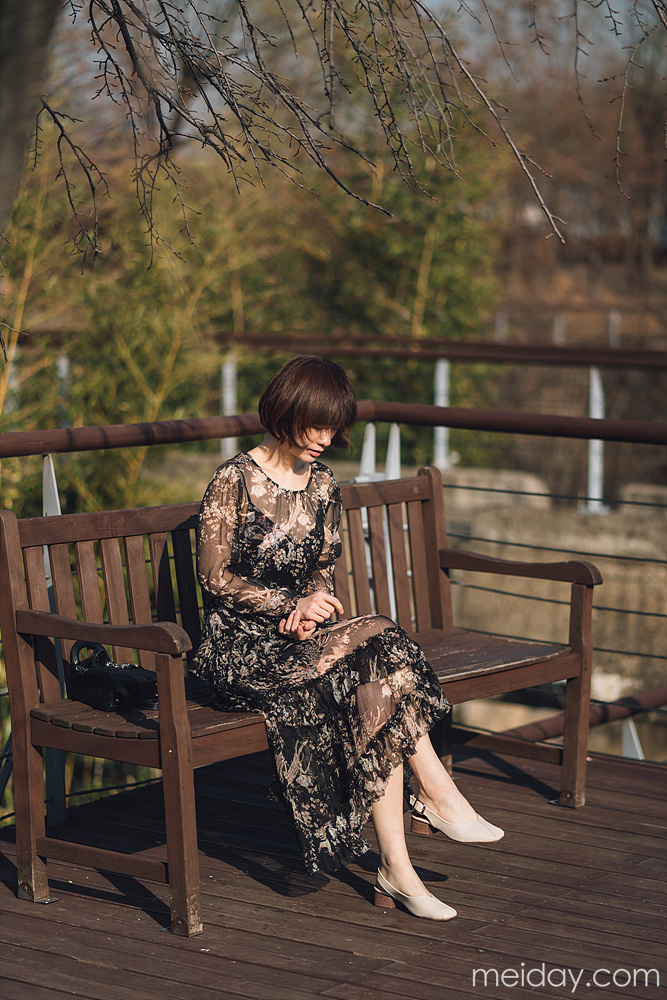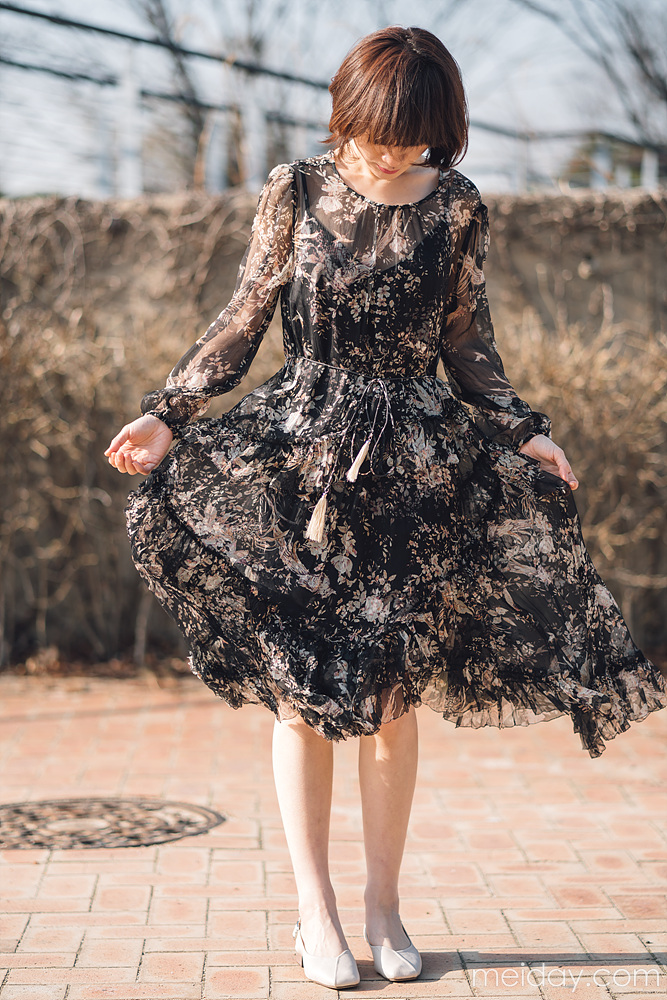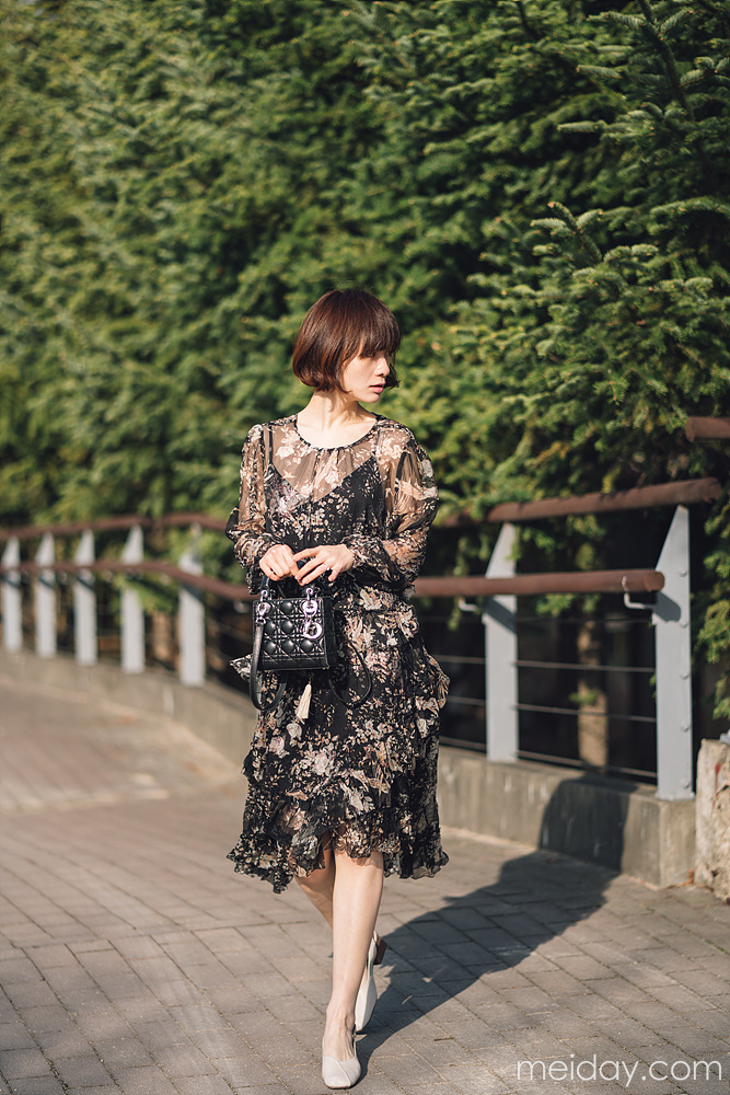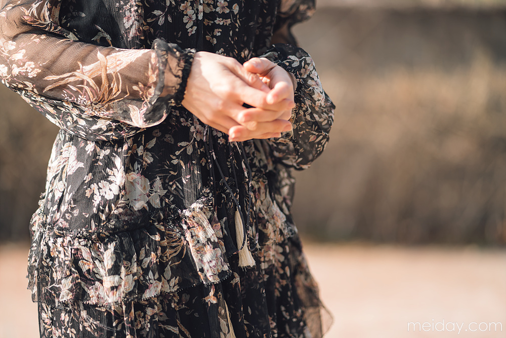 这条蔷薇花开的优雅连衣裙,分黑色和裸色两个颜色~搭配内搭~微风吹过,你就是最好看的蔷薇花~ 麦穗腰带,浪漫风情~