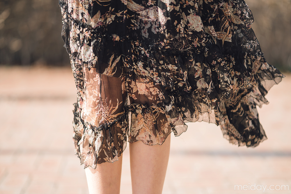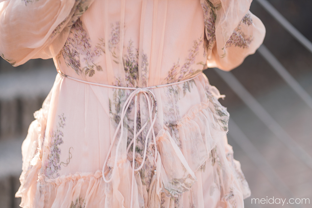 这条好看的连衣裙依旧来自Zimmermann,这是一个越看让人越会深深迷恋的牌子,它是澳洲的知名女装品牌,最善于运用女性特别喜欢的花卉,蕾丝,印花元素,打造仙气飘飘的飘逸质感~成熟的女性气质,强烈的线条感,独特的色彩搭配以及精致复古的印花图案是这个品牌的精髓~