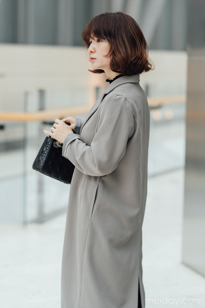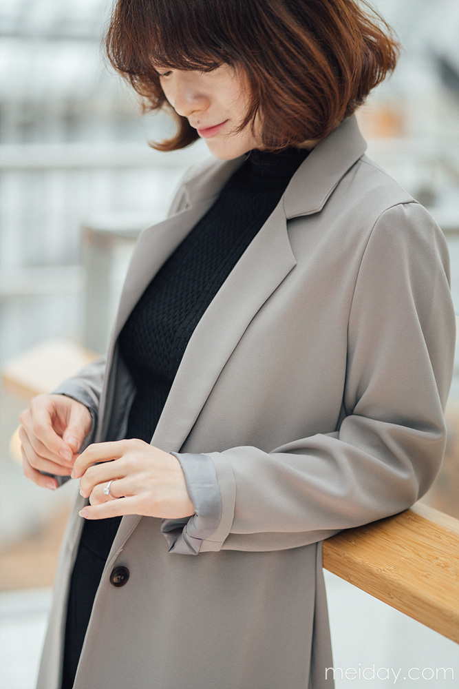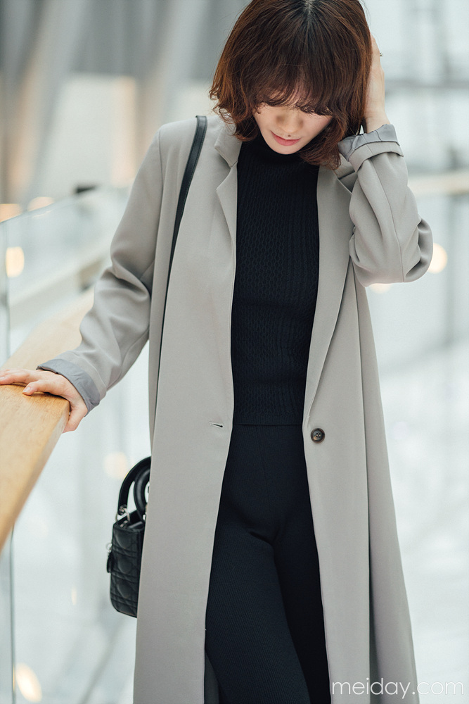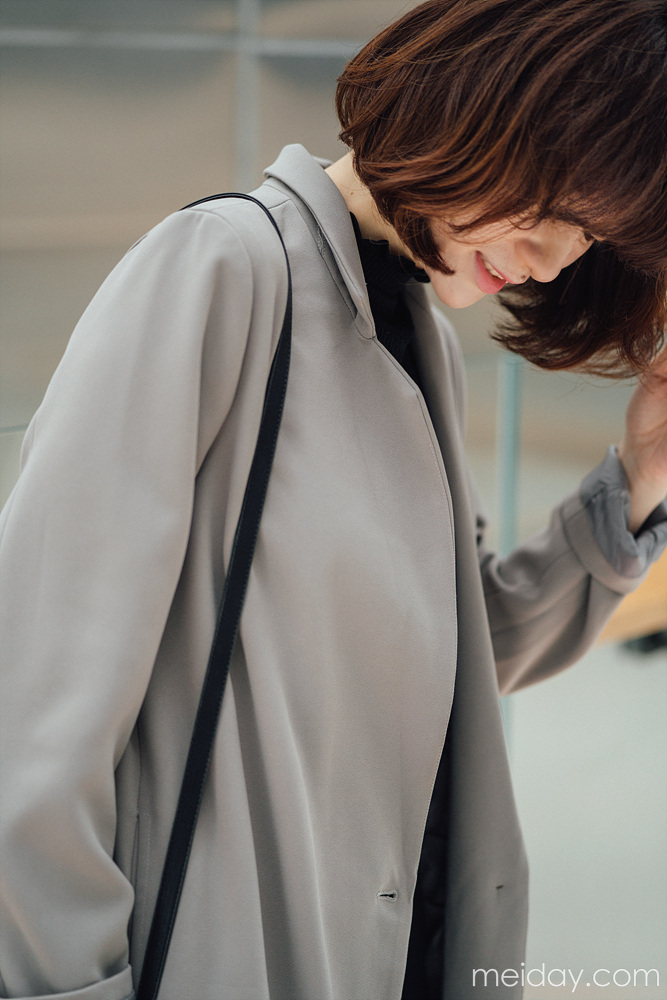高级灰的春季风衣外套,大方帅气~H型的版型设计,一气呵成,长度到膝盖下面三公分,好看又不难掌控 ~小翻领的设计,故意加长了下翻领部分直至纽扣处,这里的线条好看的不得了,特别的流畅好看~把小翻领的上半段立起来穿着,也特别的帅气~ 这件风衣,厚薄刚刚好,春天和初秋穿正合适~流畅度和垂感度真的给你一种“走路带风”的感觉~ 洋气的不得了~ 性价比也很高,很值得购入收藏,在每一个需要她的时候拿出来做搭配~这件风衣里面的内衬颜色也是极花心思的,是另一种色调的高级灰,袖口反卷的时候,特别的有品位和质感! 绝对属于几百块穿出几千块钱的质感!