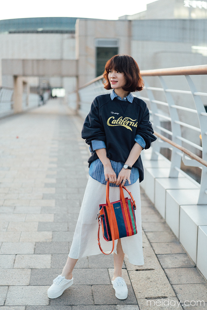 这是一条白色的绸缎半身裙,干净的泛着纯净的光芒,犹如少女般的恬静和安好~一股子似水年华和岁月静好的模样~ 今年春夏,绸缎面料的裙子一定会成为大热门,跟着meiday的节奏走,你绝对不会错过任何一个流行点~ 而且meiday本期精选的这款绸缎半身裙,力求面料精良的同时,不是那么紧贴肌肤的款式,以免将身上还未“成功减肥"的小赘肉暴露出来~而且这款裙子真的很百搭,搭配各类衬衣,卫衣,针织衫都会很好看~也可以搭配meiday本期推出的两款上衣~ 裙摆处的开叉设计,又让整条裙子看上去活泼俏皮,也让我们的行走变得更加舒适轻松~ meiday强烈推荐款之一哦! 带她回家,搭配着穿n季都不会过时的!