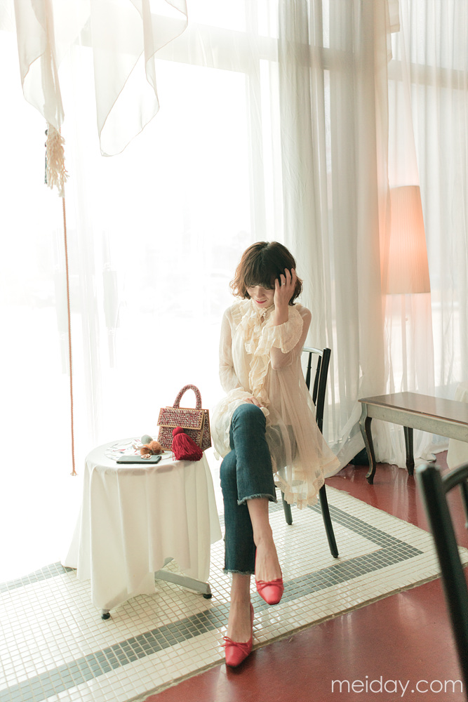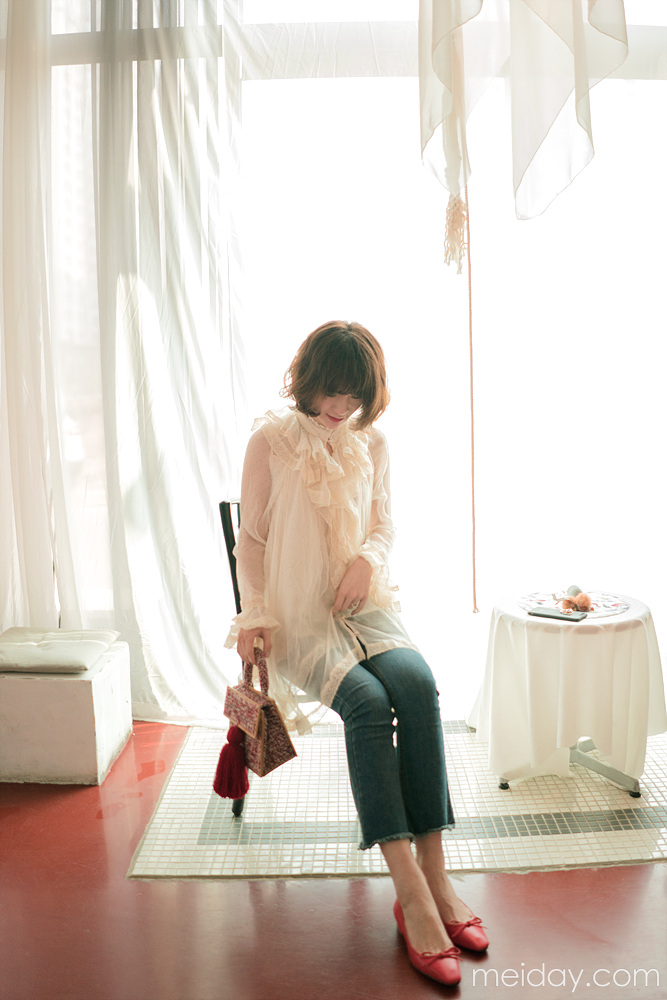 胸口大面积雪纺蕾丝褶皱设计,三层荷花边袖口的叠加设计,让飘逸的雪纺和高雅的蕾丝反复进行视觉冲击,让这件衣服安静的自带嫌弃,又热闹的如牡丹花的盛开~ 一静一动,一飘一柔,让这件衣服拥有独特的奢华和高雅~ 成衣附带同色内搭,让你性感的恰到好处~