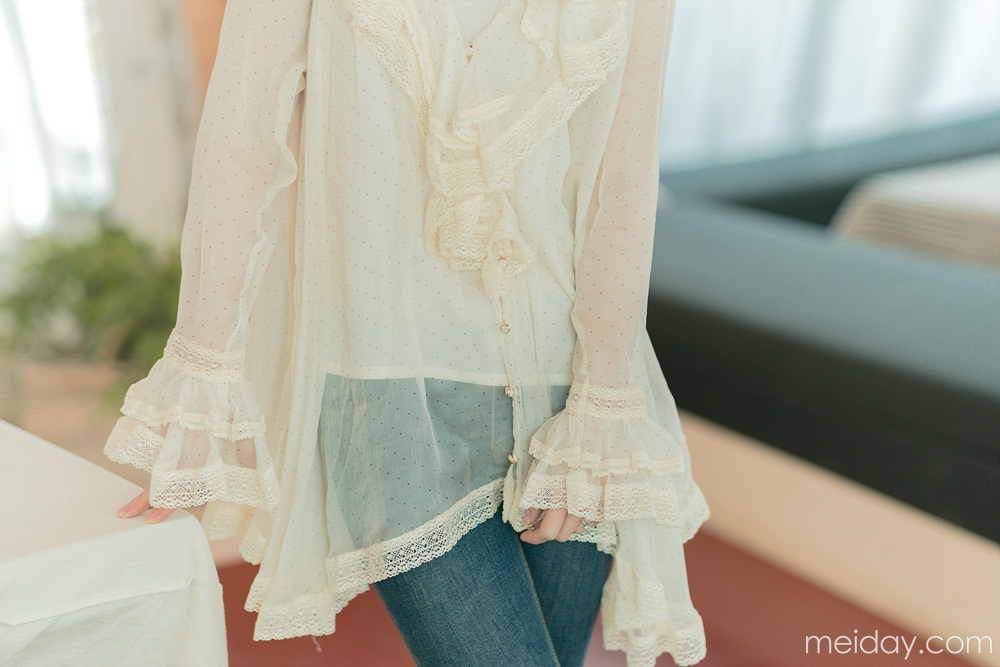 蕾丝雪纺界的爱马仕zimmer man 同款衬衣,选用高级蕾丝和雪纺面料,重工打造浪漫奢华的宫廷风飘逸衬衣,这一款衬衣,无论是约会,出席婚礼宴会等场合,还是春夏度假,都是一件能让你在人群中脱颖而出的单品。无论是小立领处,袖口处的蕾丝包边,衣摆不规则的长短设计,更是让这件衬衣充满层次感~