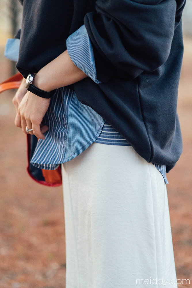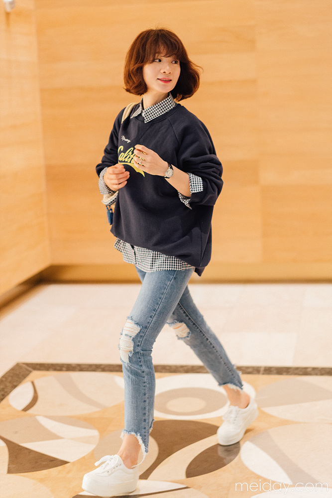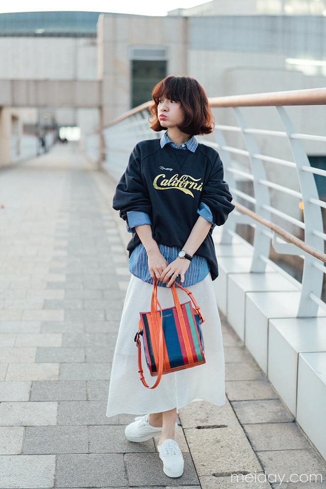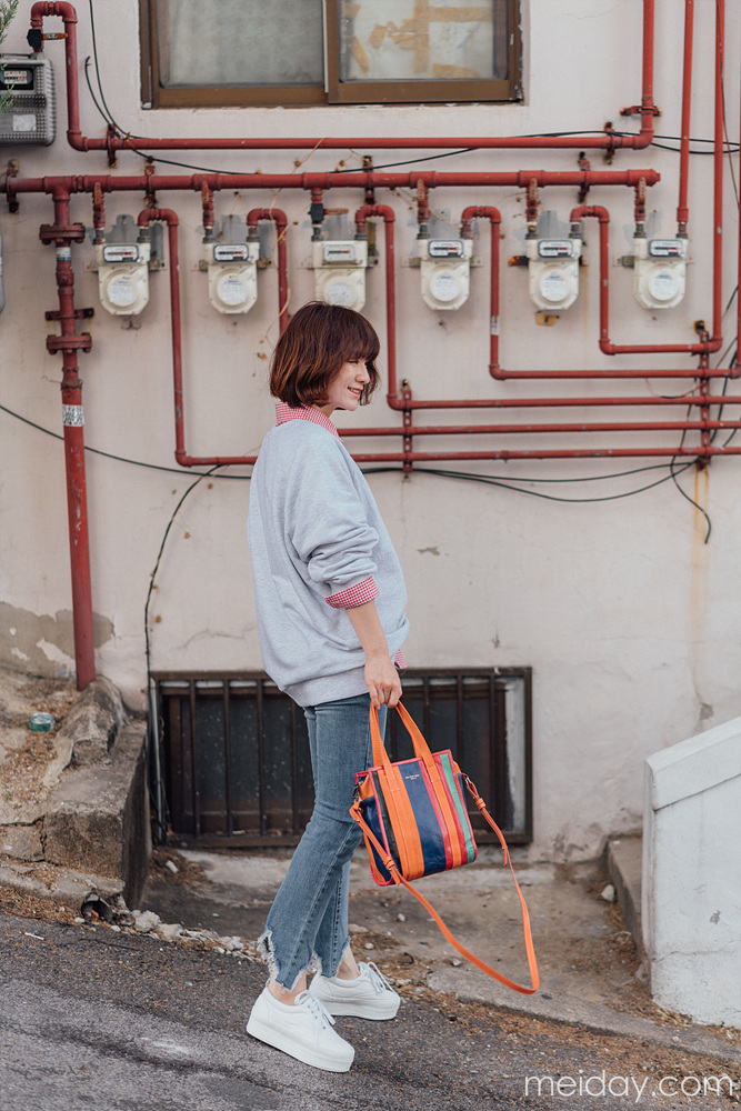 这是一款简洁又休闲还好看的春款薄卫衣,韩国的新款卫衣,meiday是最早拿到手的~所以绝对是这个季节穿的卫衣~ 整件衣服设计的干净利落,一气呵成;胸前的英文字母LOGO是亮点,而且用色非常的鲜明跳跃~长度也是特别安全感的包臀长度,适合各种身材的穿着~而且衣摆的收尾做的非常漂亮,整件衣服的型也是特别好看,无论春天单穿还是秋天搭配外套大衣穿着,都非常的帅气~性价比也很高,是值得购买的一件衣橱里“不嫌多”系列之一~