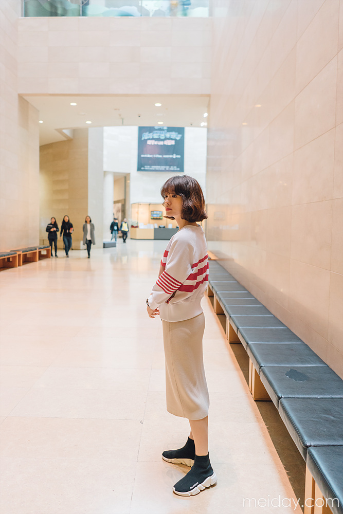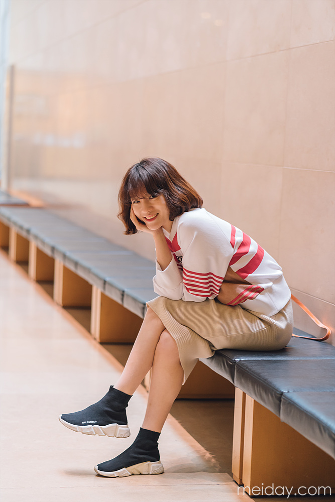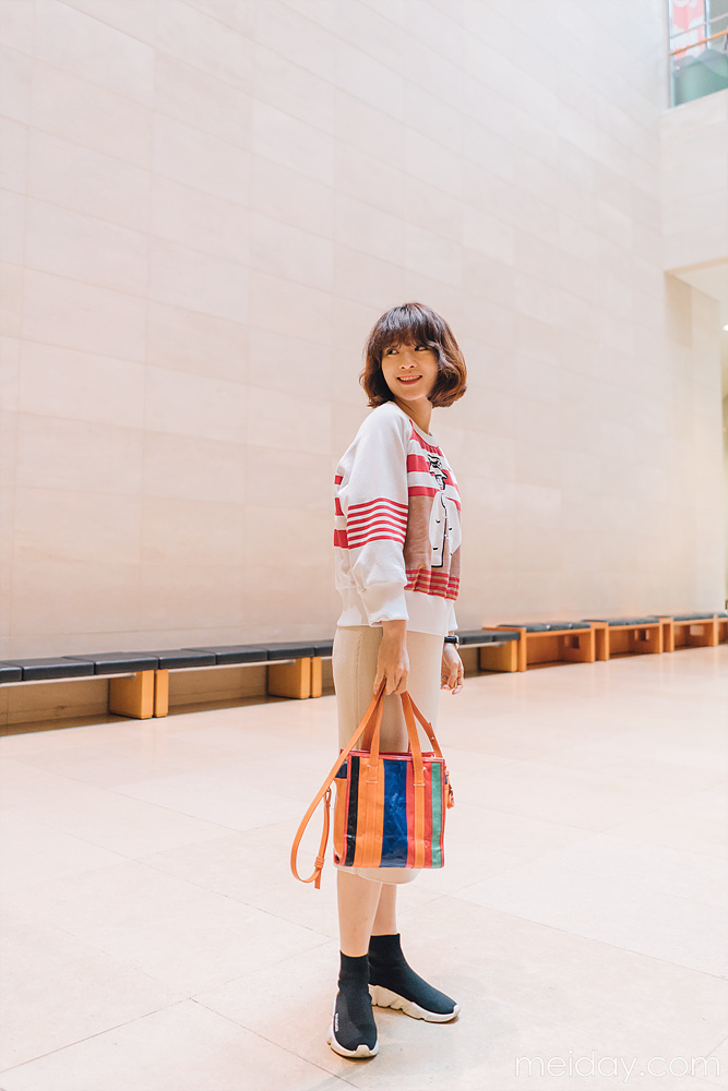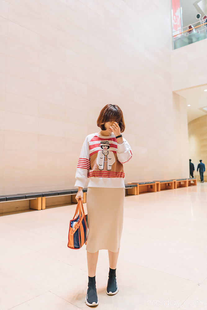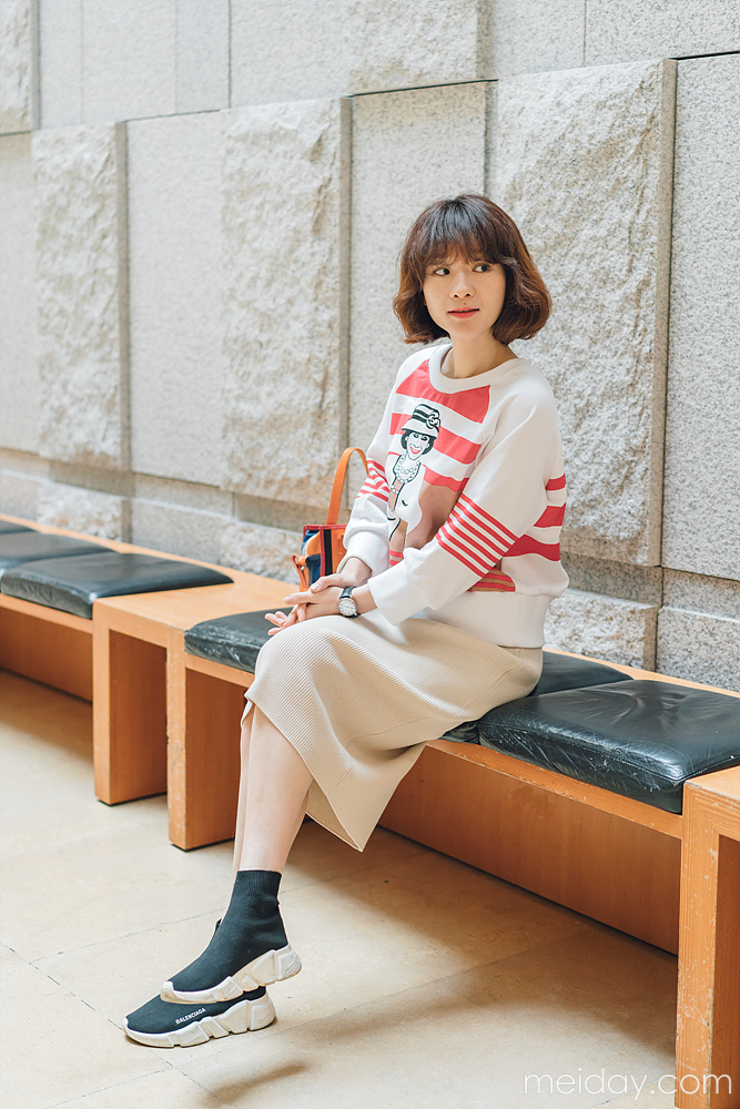 小香奶奶轻薄卫衣,红米白的金典三色拼接,加上不规则条纹元素拼接你,让这件卫衣已经显得活泼可爱!正面大胆的象奶奶独家经典造型,也只有小香家自己敢这么“放肆”了!臀部处的螺旋纹收口,微微修饰的腰部线条,都让人不经意间觉得好看~和一般卫衣相比,稍微短小的尺寸,让我们对于卫衣的概念不仅是运动感搭配,还可以有更多种优雅的可能~ 也如象奶奶,不仅仅只有正襟危坐的贵妇感~我想这就是这件小香卫衣想要带给我们的讯息~ meiday搭配了前几期的薄款针织裙~