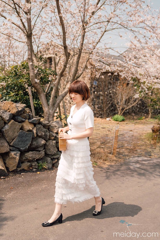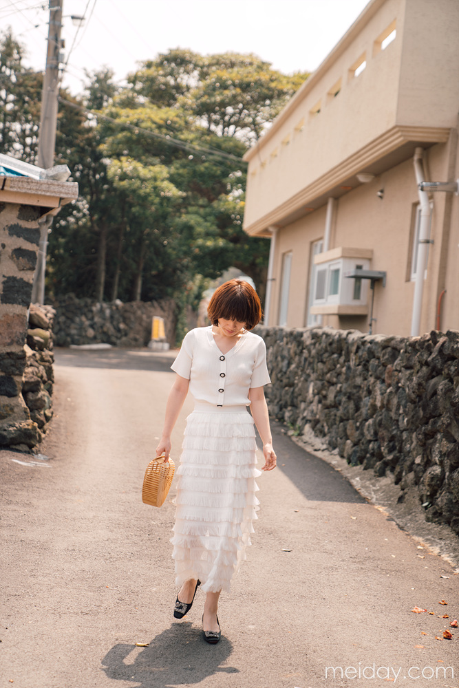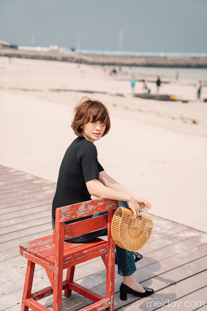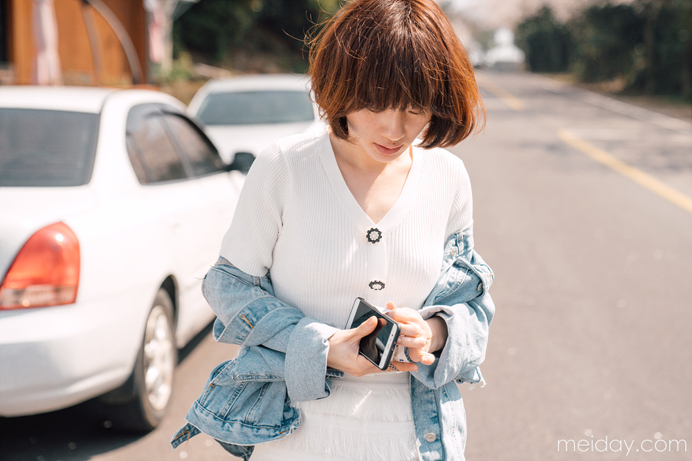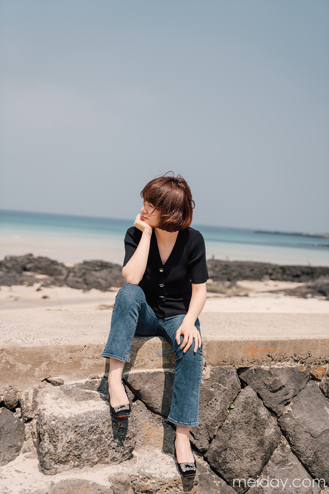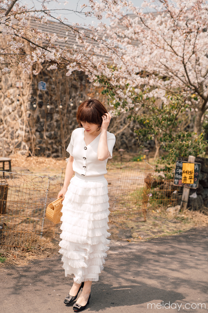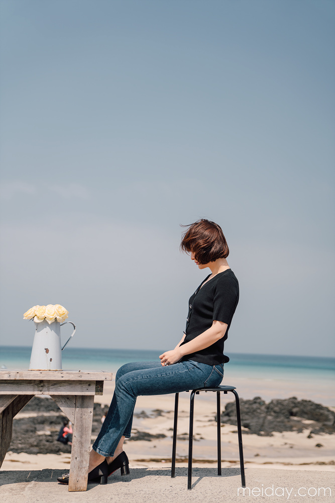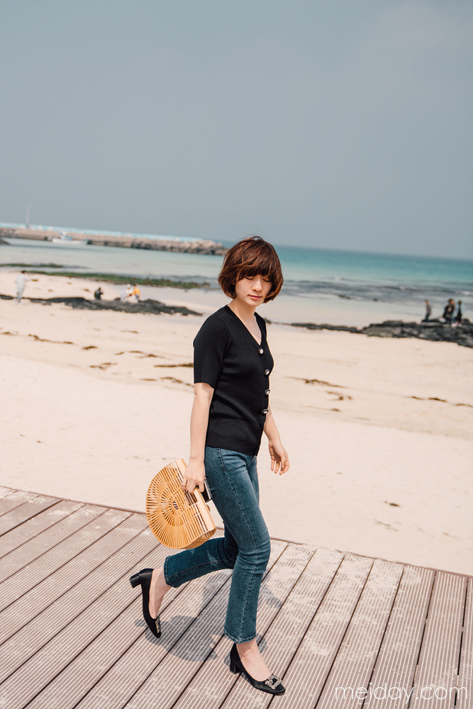 超级适合春夏穿着的一件短袖弹性针织衫~ 不同于一般的紧身针织衫,这件针织衫是相对宽松的,会把你的身形修饰成她“设计”好的样子~ V字领的设计,让颈部线条看上去更修长~珍珠做成的小花纽扣,别致好看,而且特别有女人味~ 也让整件衣服重点突出,干净素雅里带着一份特别的感觉~ 这件衣服的设计其实有一种小帅气合小慵懒交融的小性感~ 黑白两色都各自有各自的感觉~可以根据喜好选择~ 面料透气轻薄,弹性极好,绝不会有闷热感,很适合春夏穿着~